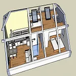 Vissa rum inkluderar också mikrovågsugn, kylskåp och vattenkokare. Lägenheten ligger omkring 115 km från Ljubljana flygplats.